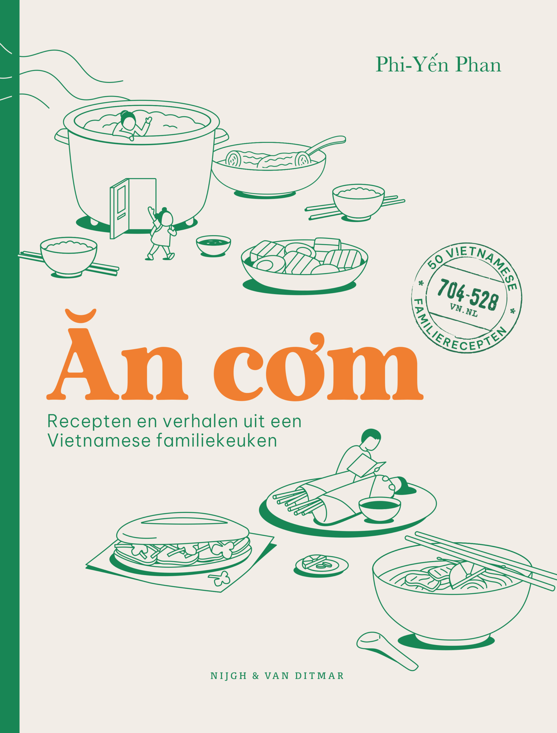 nWanneer er ‘An com!’ van onder aan de trap werd geroepen, wisten Phi-Y?n en haar zus dat het etenstijd was. De geur van versgekookte rijst danste dan al door heel het huis. De letterlijke vertaling van ‘an com’ is ‘rijst eten’, maar het betekent in de Vietnamese volksmond ‘aan tafel’. In An com neemt Phi-Y?n je mee in een wereld waar eten en familie centraal staan. Ze deelt de gerechten waar ze mee opgroeide: recepten die haar ouders vanuit Vietnam meenamen. Door samen te koken leerde Phi-Y?n beter te begrijpen hoe haar ouders in Vietnam leefden en wat ze allemaal hebben meegemaakt tijdens hun reis naar Nederland, die ze afzonderlijk van elkaar maakten.