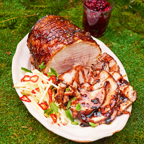 4. Verwijder de folie 30 minuten voor het eind van de braadtijd. Schep de groenten door elkaar, druppel wat granaatappelmelasse over het vlees en schuif de braadslede weer in de oven. Als de korst krokant is en het vlees van het bot loslaat, is het klaar. Neem het uit de oven, strooi de rest van de gestampte specerijen erover en laat het vlees, losjes bedekt met de alufolie, 10–15 minuten rusten.