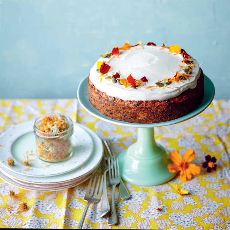 Bak 2 grote gesnipperde uien,3 gehakte tenen knoflook, de fijngehakte steeltjes van 1 bosje basilicum (bewaar de blaadjes) en 2 stengels bleekselderij zacht. Voeg 800 g tomaten, ontpit en grof gehakt, toe, en bak ze 4–5 minuten mee. Voeg de aubergine weer toe met een handvol gehakte zwarte olijven, 50 g geroosterde pijnboompitten, 4 el kappertjes, een scheutje rodewijnazijn en zo nodig wat water; bak alles nog zo’n 5 minuten. Voeg eventueel een beetje suiker toe.