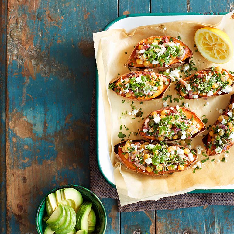 Per portie 554 kcal, 15,9 g vet (4 g verzadigd), 47,7 g eiwit, 37,7 g koolhydraten, 9,9 g suikers